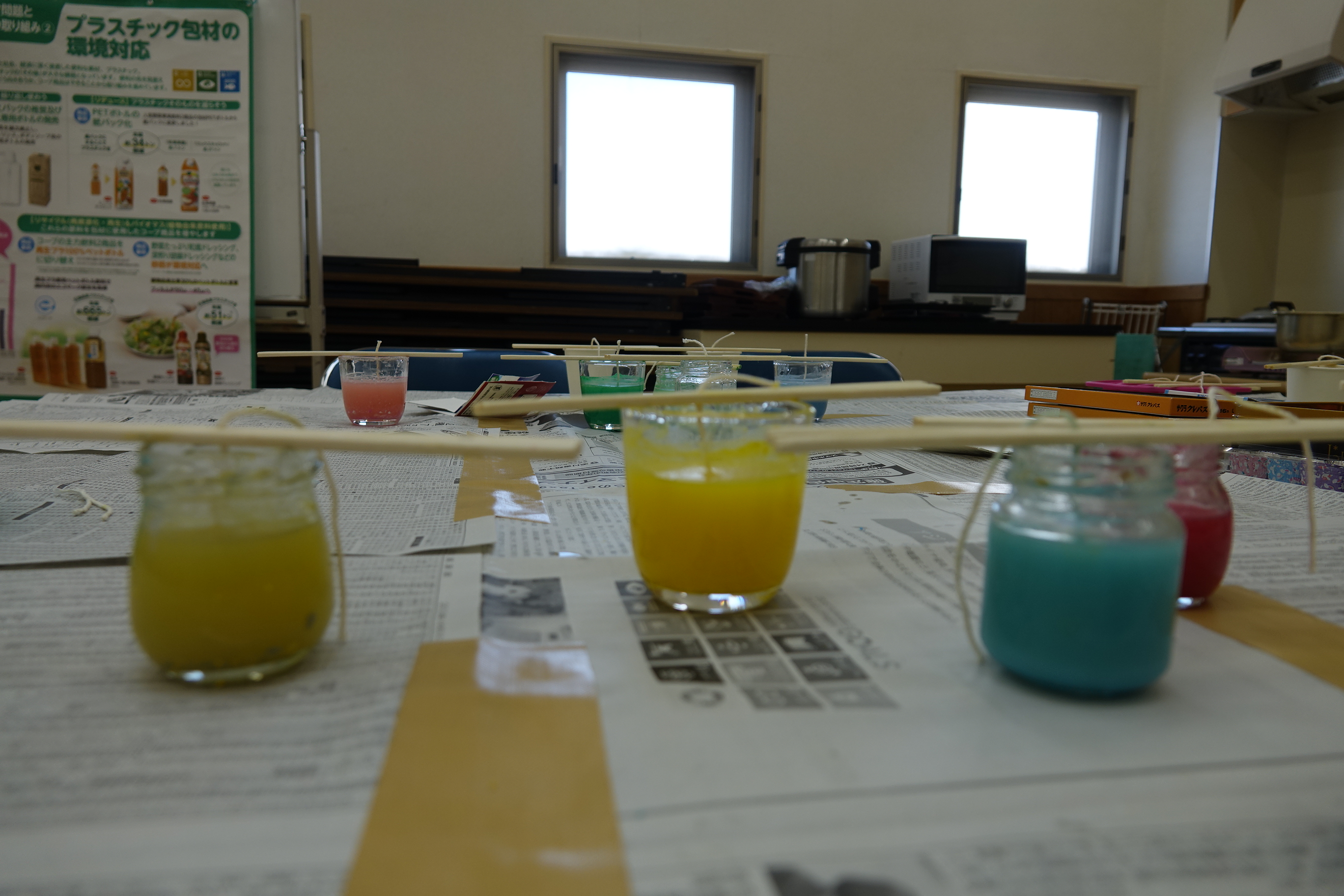 コープかもべの総菜部門から排出された廃油を使用して、エコキャンドルづくりを行いました!