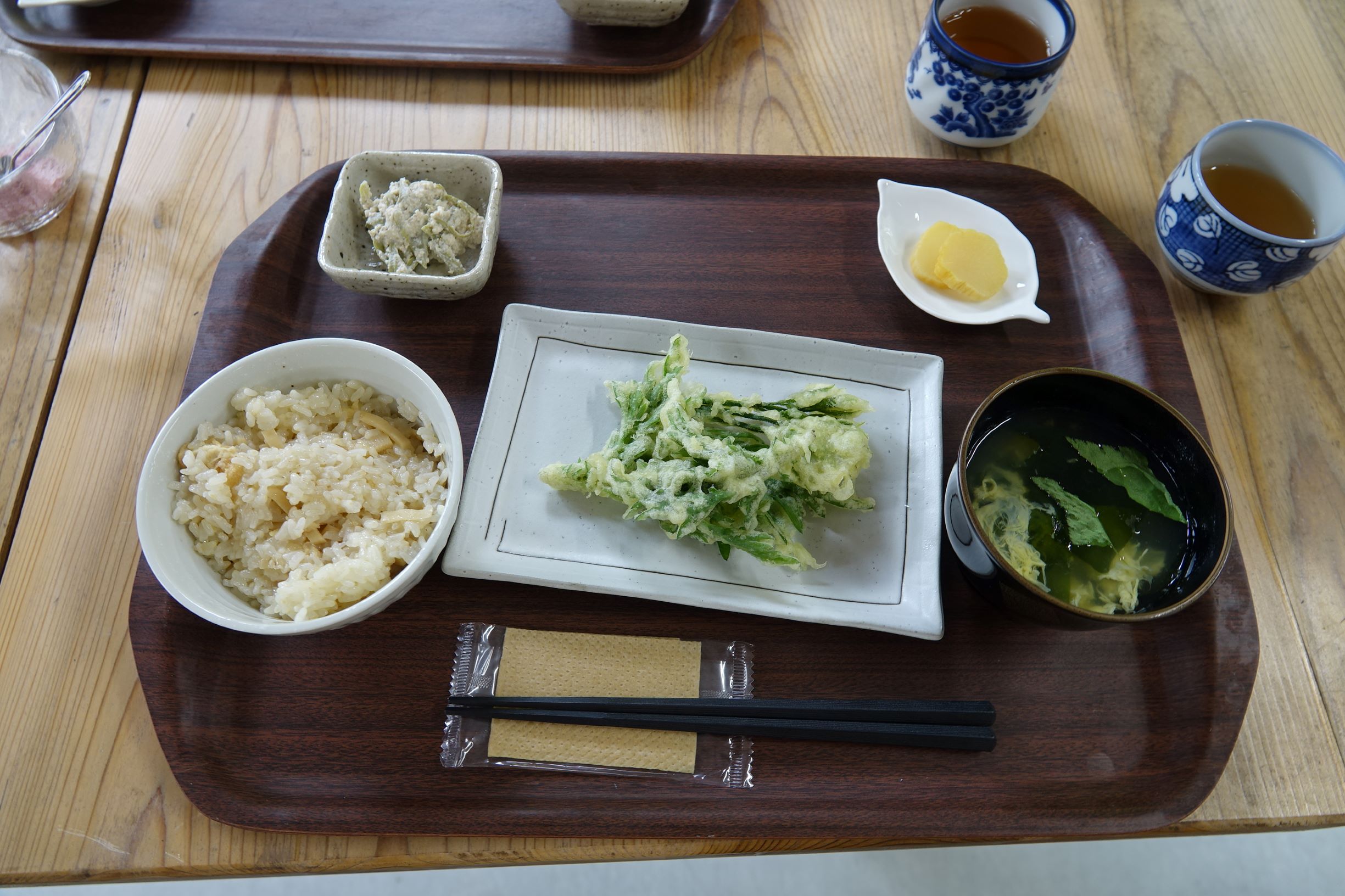 お昼ごはんの時間には、地域の方が手作りの山菜ランチを振舞ってくださいました!はじめてみる山菜がたくさんあり、みなさん興味深そうに調理しているところを眺めていました(笑)。苦みもあるし残す子がいるかなと心配でしたが、みんな完食!とってもおいしかったようです☆