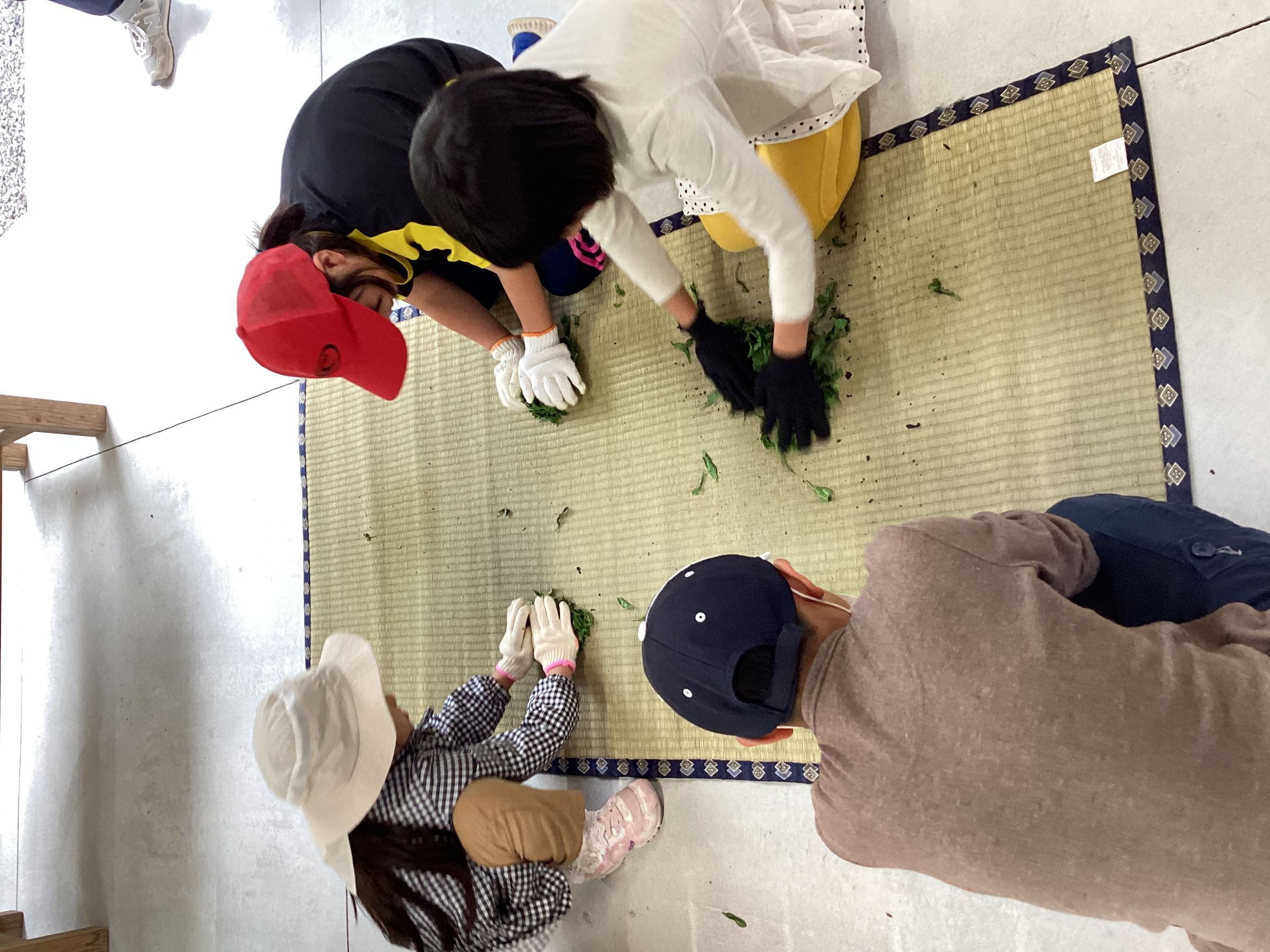 茶葉を揉む作業では、子ども達が競い合って作業をしていました。「熱いー!」