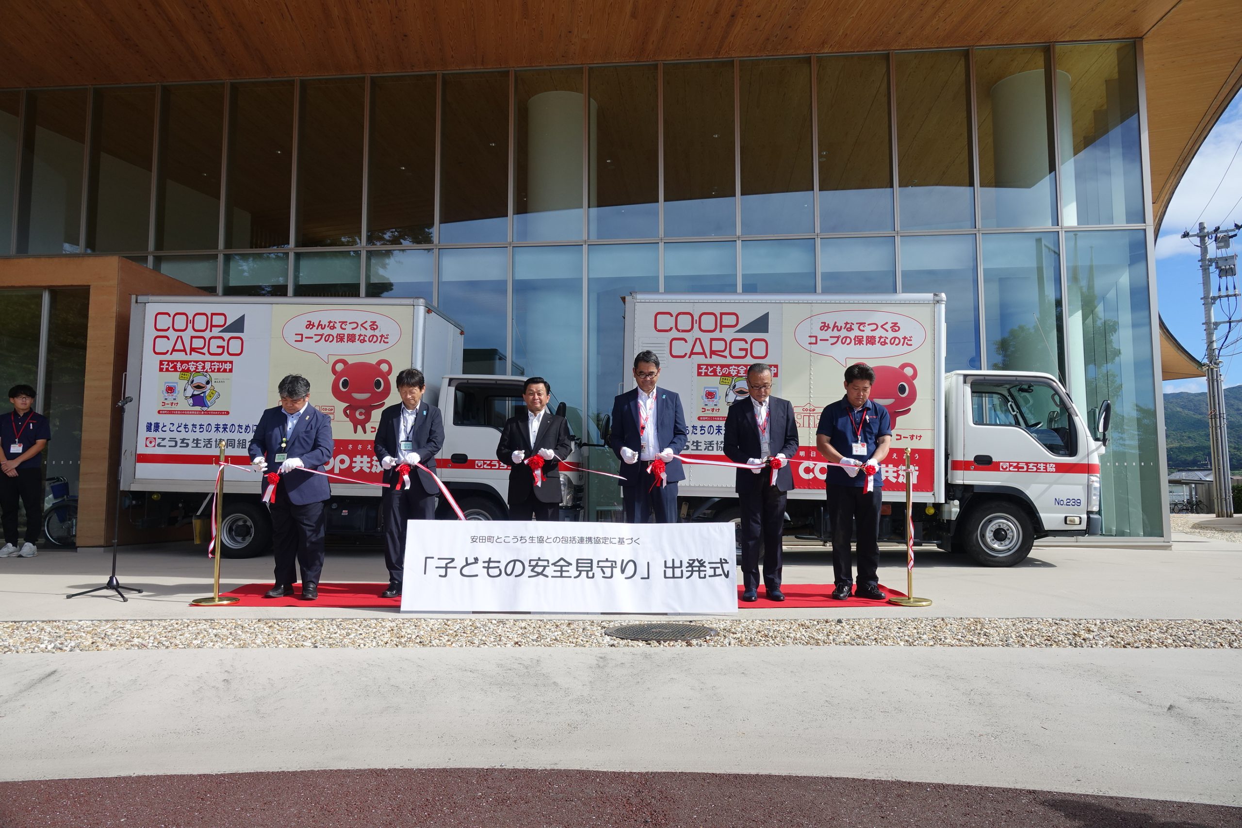 2024年9月17日(火)安田町役場にて、安田町とこうち生協との包括連携協定に基づく「子どもの安全見守りトラック」の出発式を執り行いました。