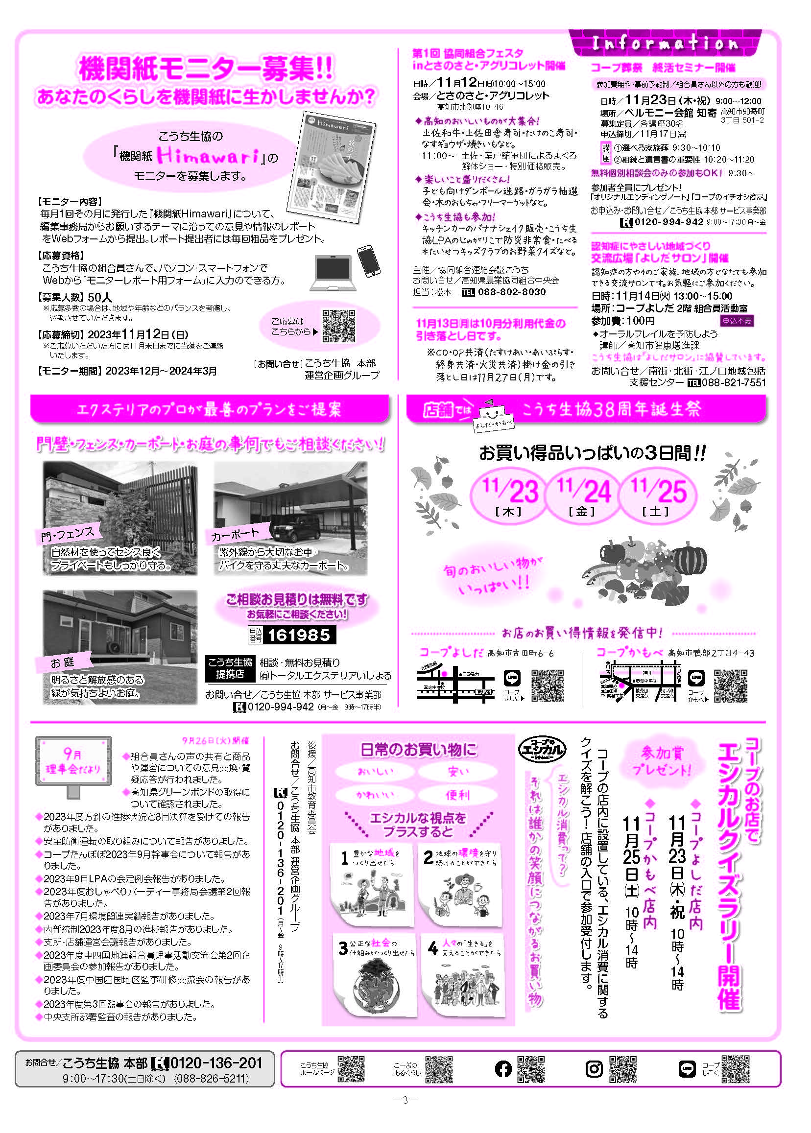 ◇機関情報紙『Himawari』11月3回号◇2023.11.01