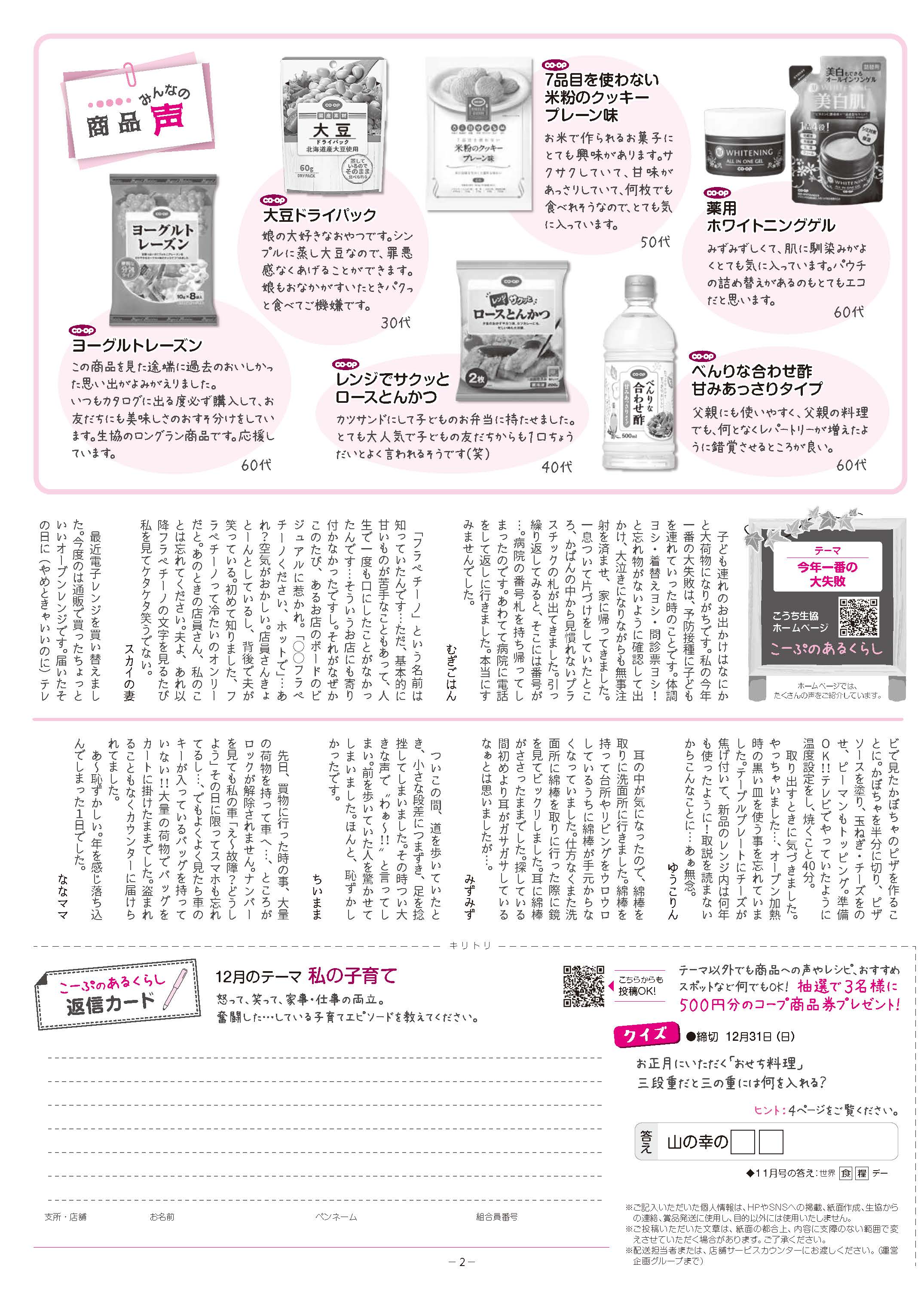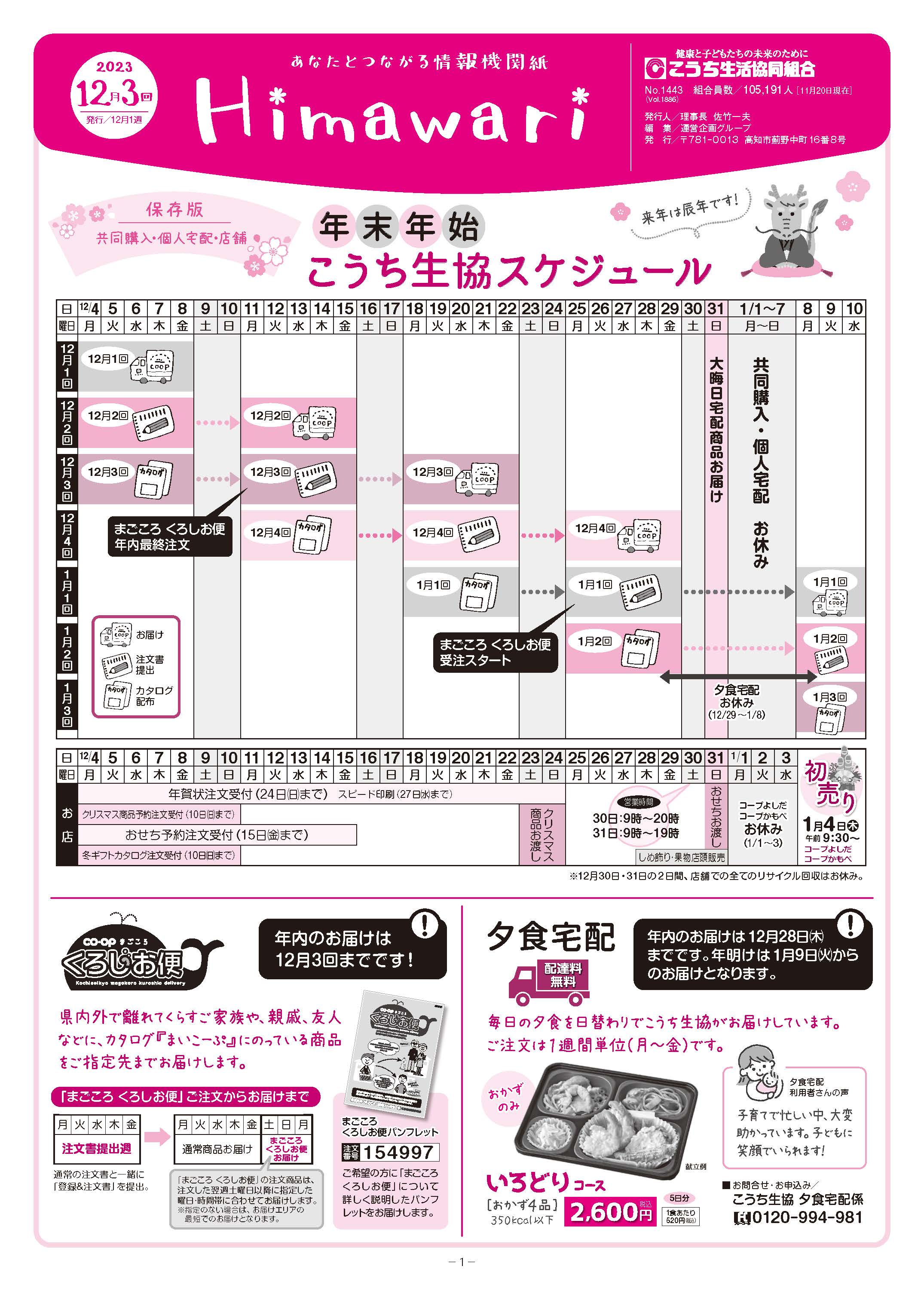 【年末年始 こうち生協スケジュール】