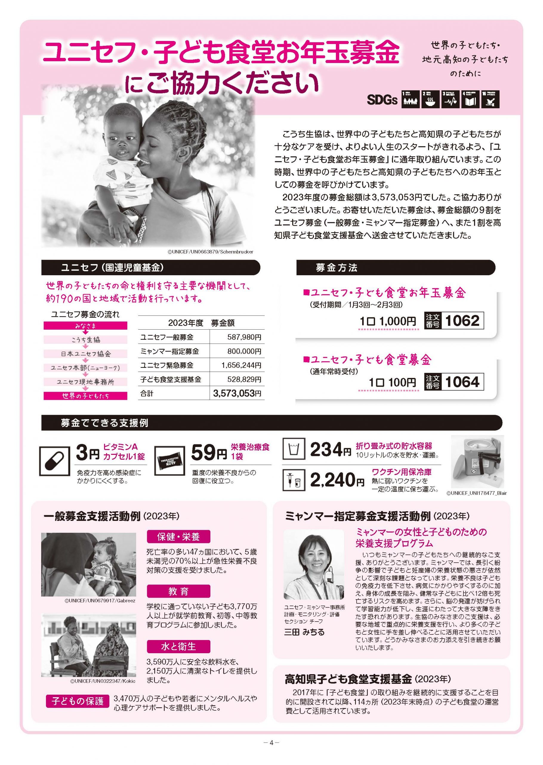 〇ユニセフ・子ども食堂 お年玉募金