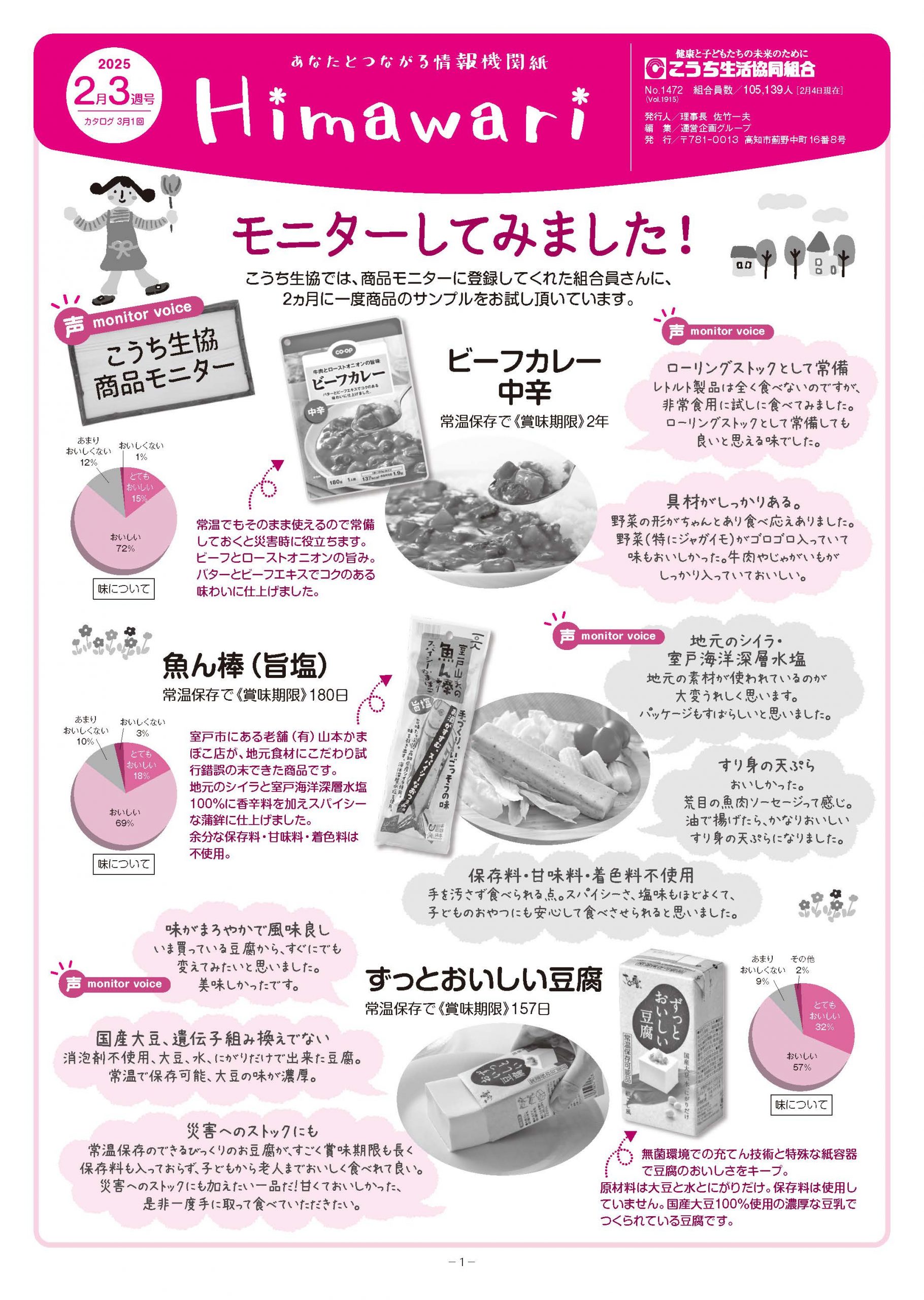 こうち生協では、商品モニターに登録してくれた組合員さんに、