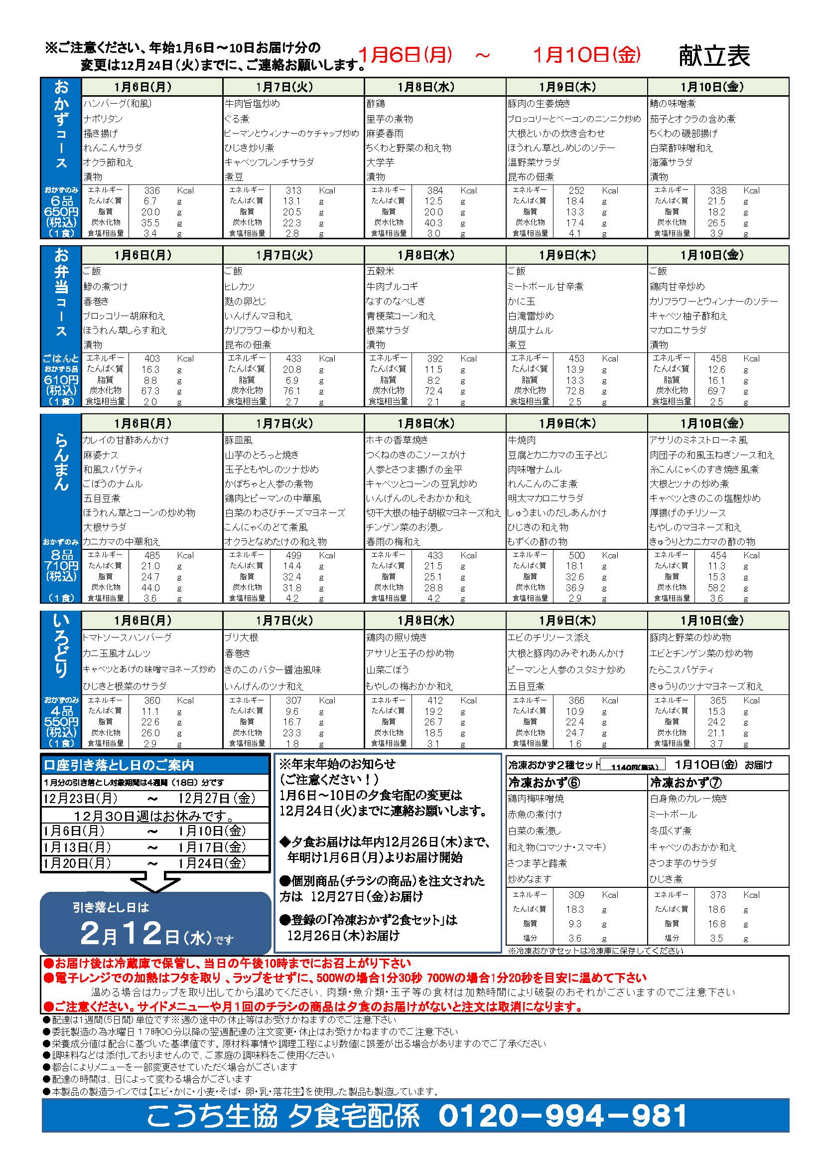 夕食宅配メニュー表(1月6日~1月10日)2024.12.17
