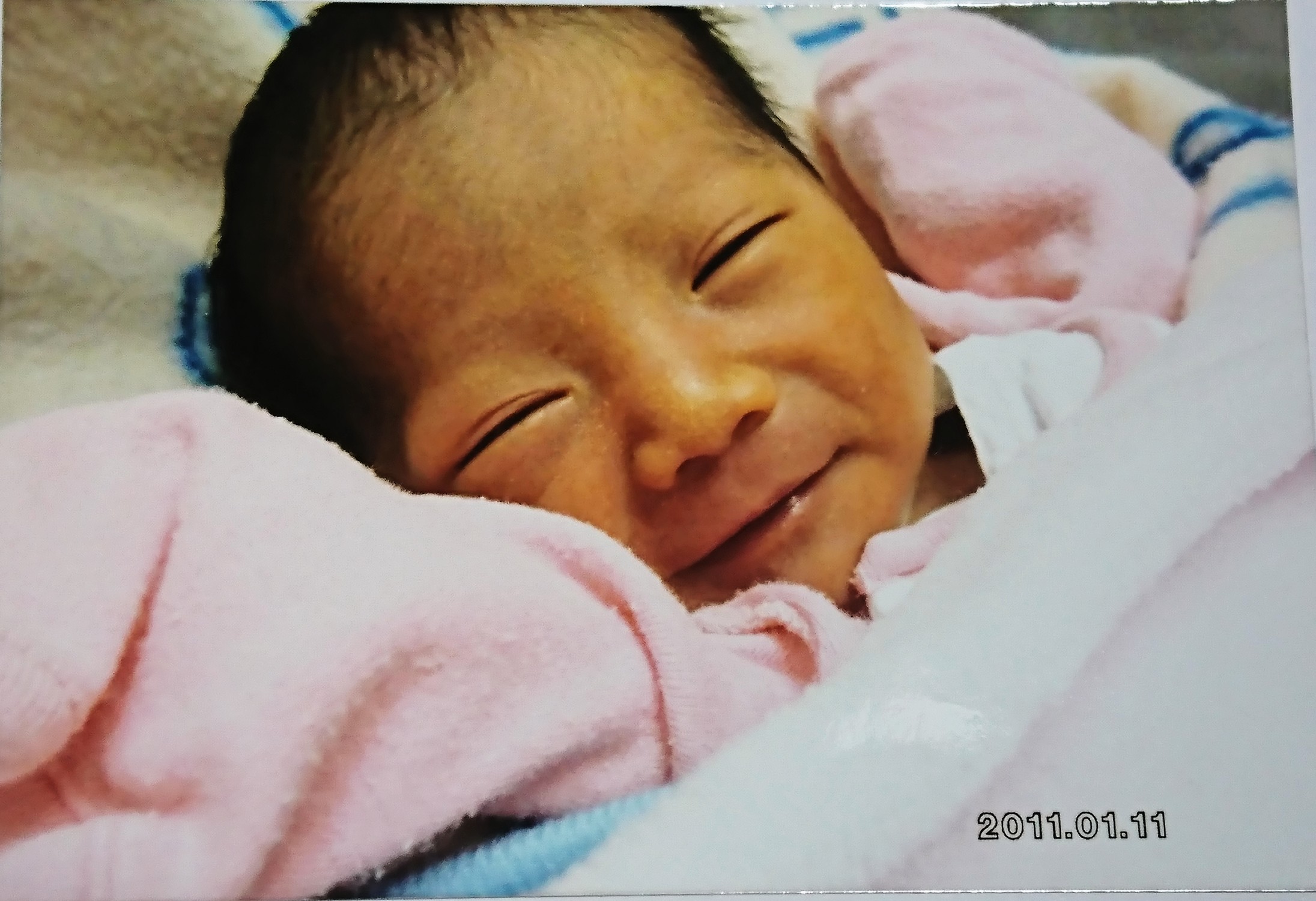 2011.1.5生まれの姪っ子ちゃんです。産院から家に帰って、にっこり(⌒‐⌒)の瞬間!
