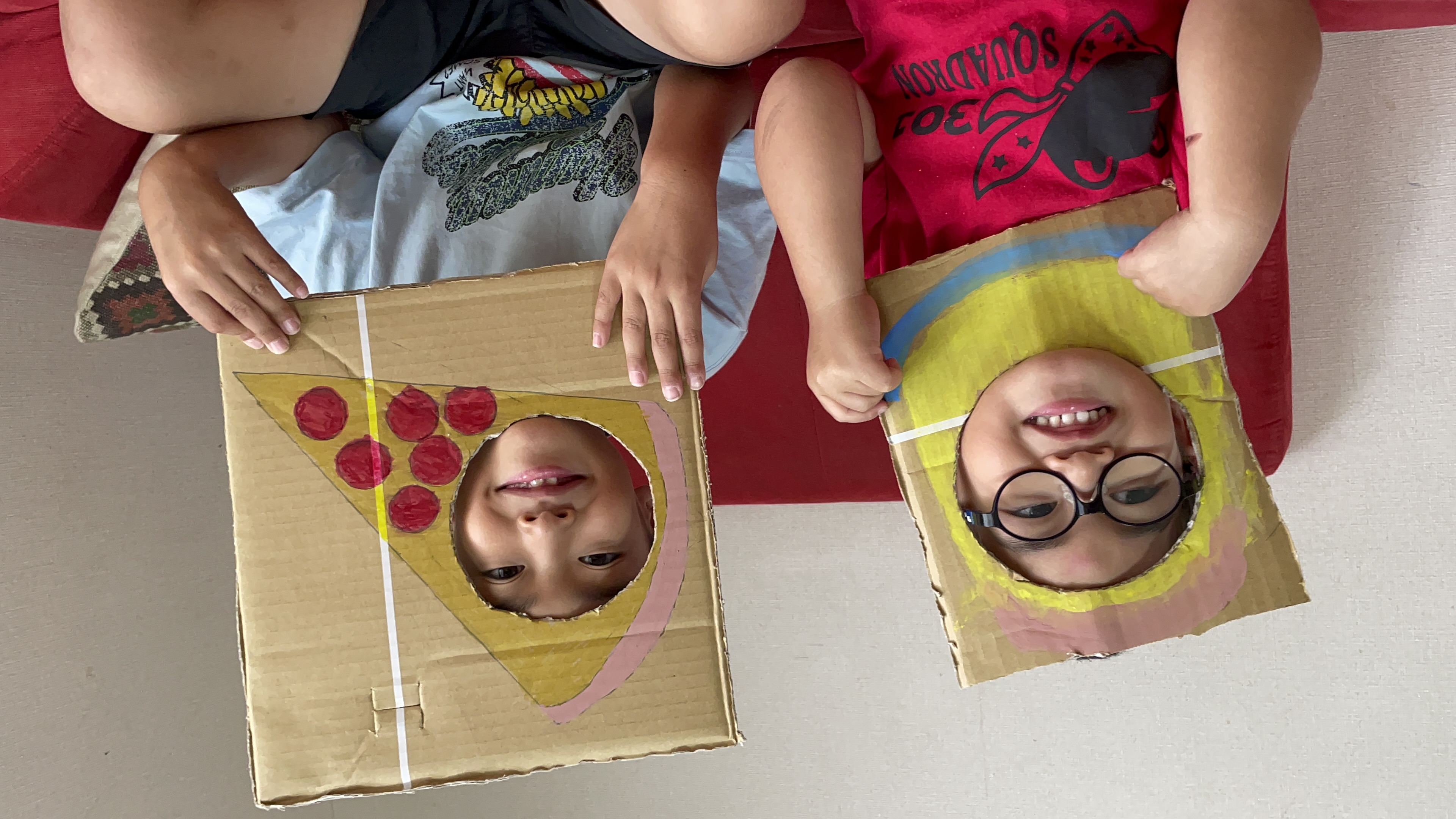 工作が好きな兄弟です!顔出しパネルを作ってみよう!と一緒に作ってみて写真を撮ってみました!2人とも上手に作れていい笑顔でお気に入りの1枚です(^O^)